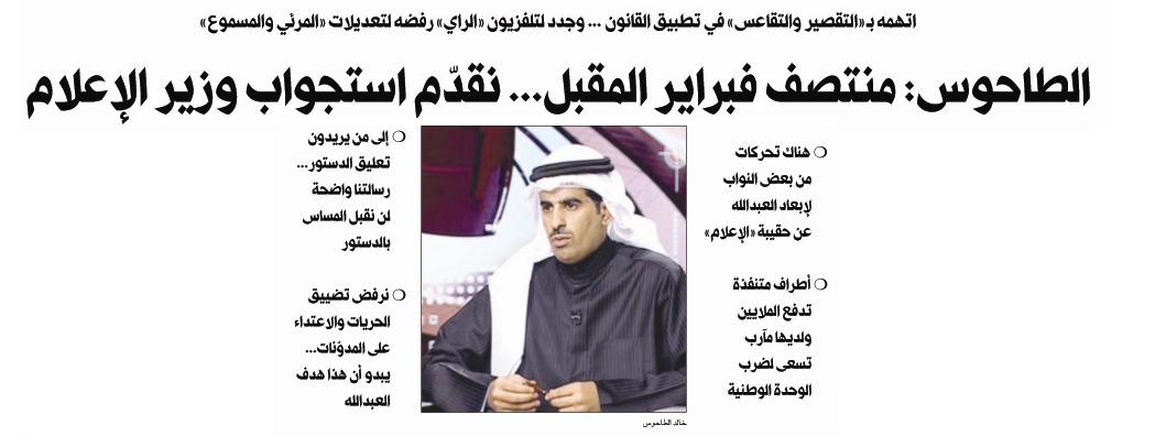 الطاحوس: منتصف فبراير المقبل... نقدّم استجواب وزير الإعلام