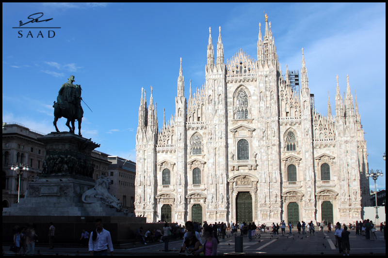 طبعا فيه مكان كل من ينزل في ميلانو لازم يزوره بالغصب ... وانا عن نفسي كنت كل يوم اروح للمكان هذا واتمشى فيه واقعد بالقهاوي اللي عنده .. وهو ساحة الدومو الشهيره .. واعتقد انها غنية عن التعريف ..