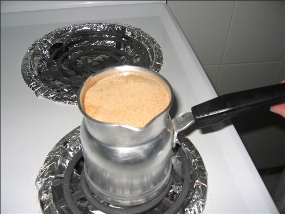 كوبين حليب مراعي + ملعق صغيره كاكاو + ملعقتين صغيرتين قهوة تركية