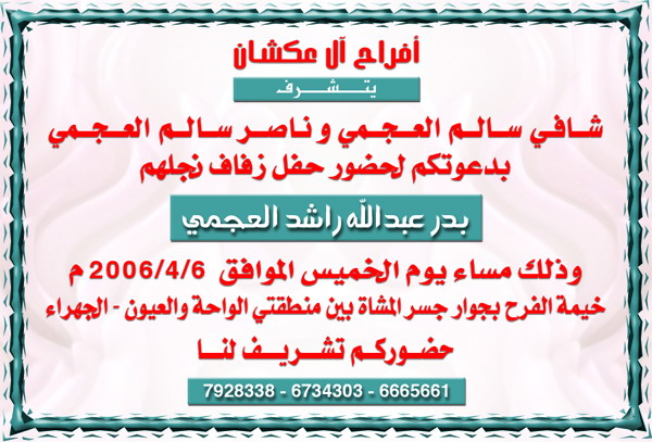 يتشرف السـيدان / شافي سالم العكشان العجمي و ناصر سالم العكشان العجمي