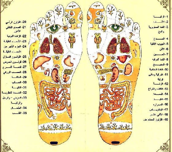 وهي تدليك نقاط معينة في القدمين او اليدين بطريقة معينة بحيث يحدث ذلك تأثيراً علاجياً في مناطق الجسم المختلفة.